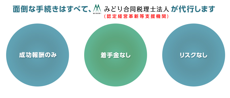 中小企業ならほとんどの業種で適用可能です。面倒な手続きはすべて弊社が代行します。
